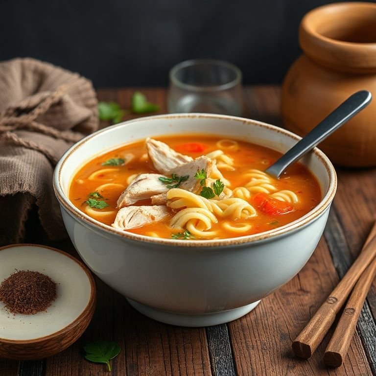 A clear, hearty broth with tender chicken, noodles and winter vegetables — evergreen and widely searched.