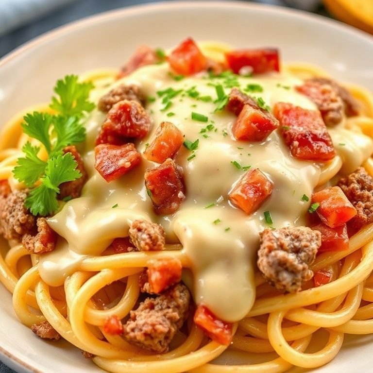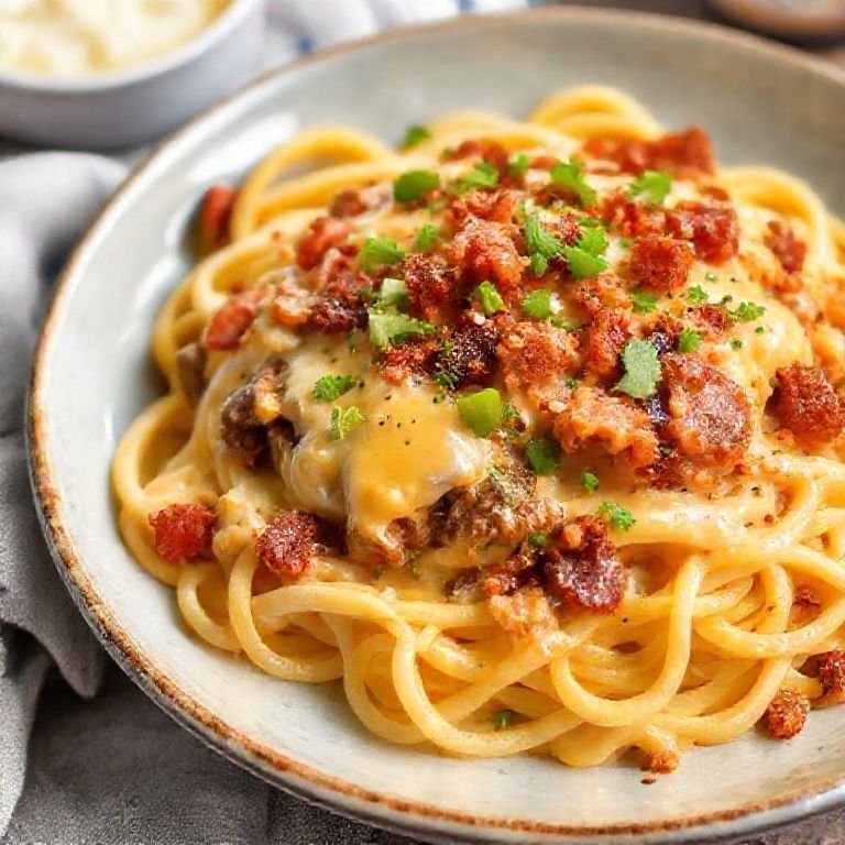 Loaded Bacon Cheeseburger Alfredo Pasta – Cheesy, Meaty & Totally Comforting!